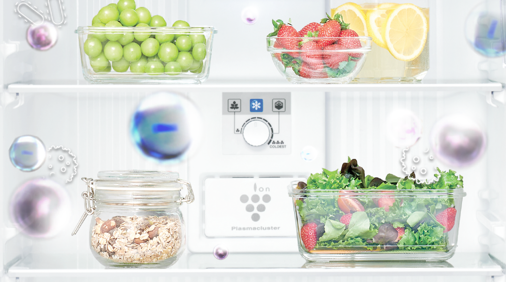 Công nghệ Plasmacluster Ion sẽ tạo các ion dương và ion âm lan tỏa khắp các ngăn tủ và khi gặp vi khuẩn, vi rút hoặc nấm mốc sẽ tạo thành các gốc OH- để phá hủy các cấu trúc protein của vi khuẩn và hút Hidro (H+). Qua đó tạo phân tử nước và giải phóng vào không gian tủ mang đến một không gian trong lành, sạch khuẩn.