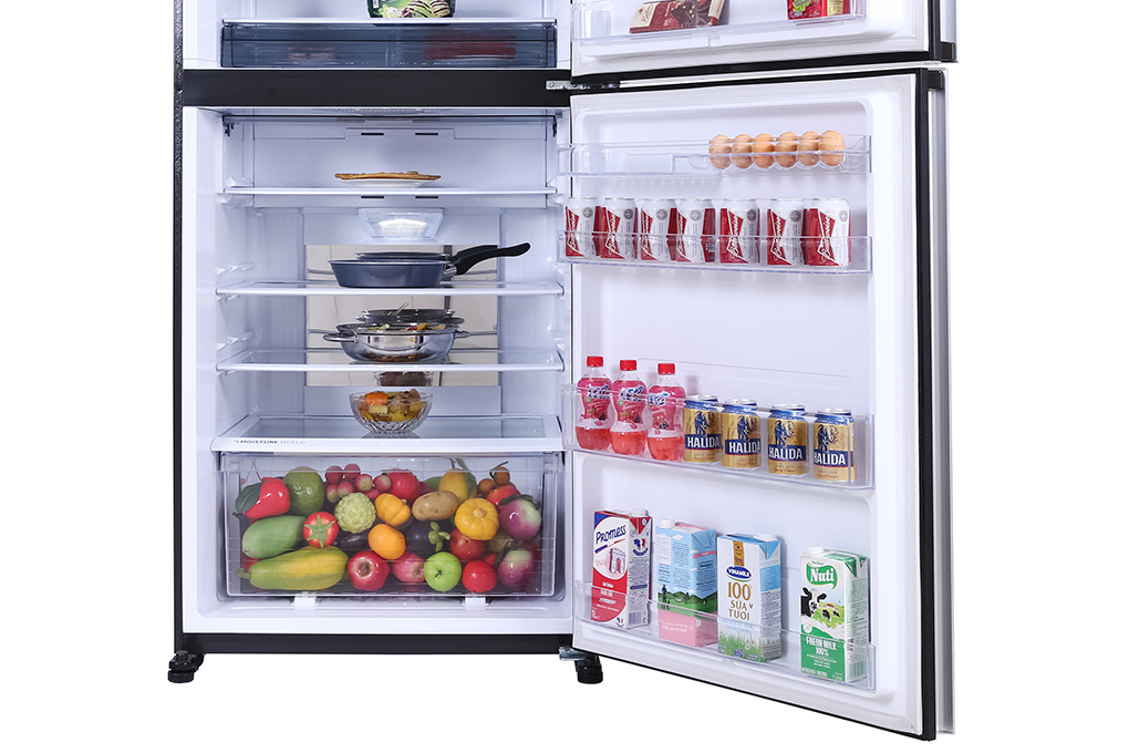 Ngăn giữ tươi thực phẩm trên tủ lạnh này được thiết kế khá rộng rãi. Đặc biệt là khả năng chuyển đổi linh hoạt từ ngăn giữ tươi thành các ngăn chứa tiện lợi khác. Tiện ích này cực kỳ hữu ích, phù hợp với nhiều mục đích sử dụng khác nhau của người dùng.
