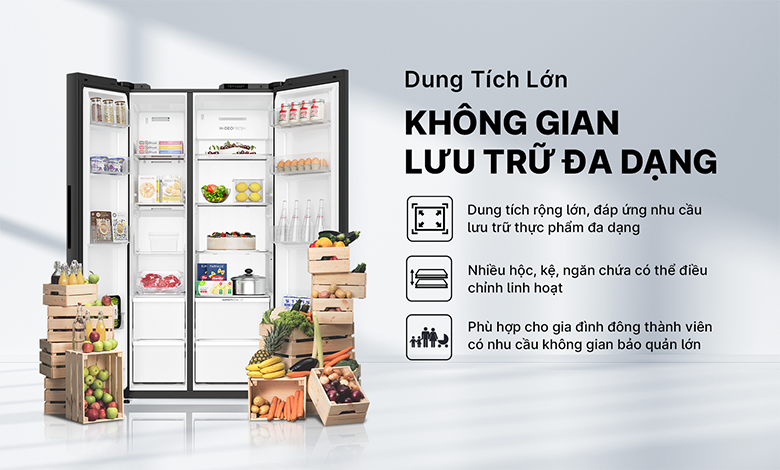 Tủ lạnh Aqua AQR-S633XA(SL) dung tích lớn, không gian lưu trữ lý tưởng