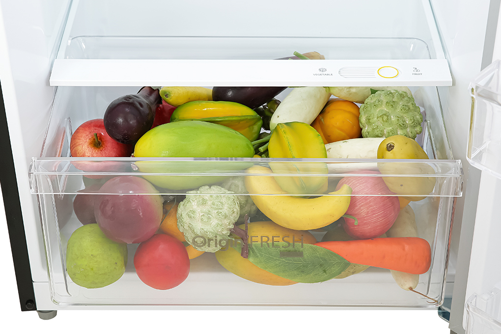 – Ngăn rau quả Origin Fresh: Cho phép bạn tùy chỉnh độ ẩm bên trong ngăn chứa theo 2 mức từ 60% – 80%, giúp rau củ giảm thiểu được tình trạng úng hoặc héo trong suốt thời gian bảo quản, thích hợp cho các hộ gia đình sử dụng rau củ quả thường xuyên.