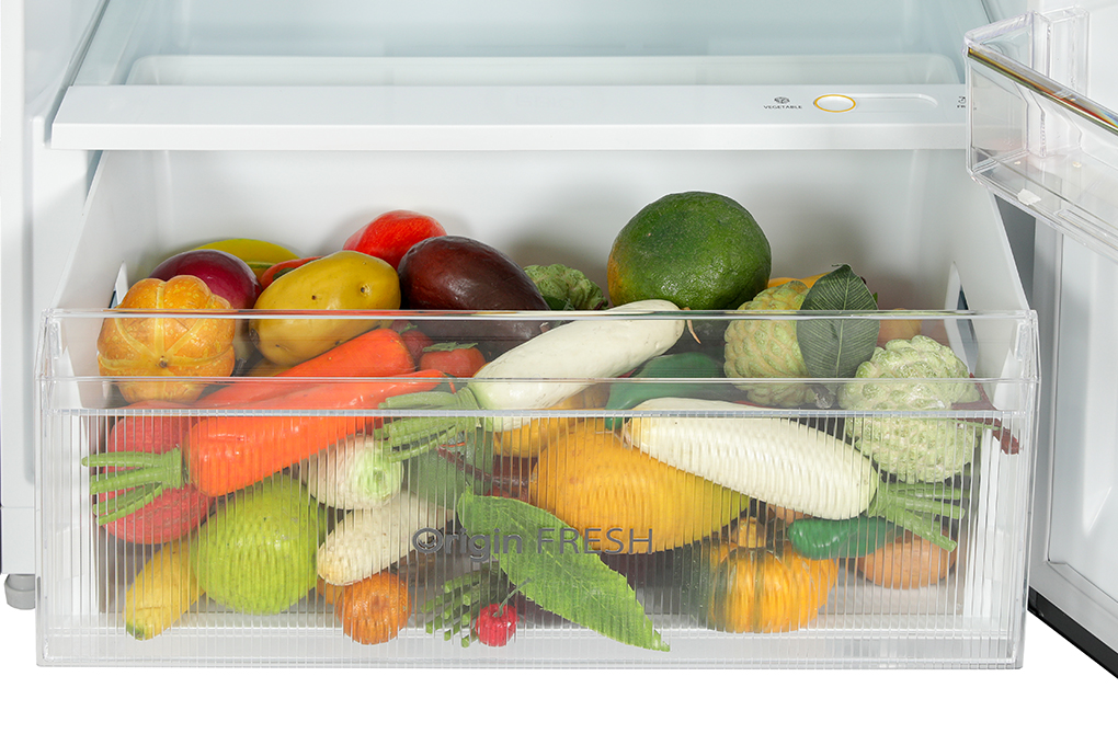 Công nghệ Origin Inverter: Tiết kiệm điện, vận hành êm ái, hơi lạnh được tỏa ra một cách đều đặn giúp nhiệt độ ổn định, đảm bảo thực phẩm giữ trọn độ tươi ngon.