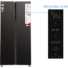 Bảng điều khiển điện tử được bố trí bên ngoài tủ lạnh Toshiba Inverter, nằm trên tay cầm phía trên của ngăn mát, giúp người dùng dễ quan sát và điều khiển thuận tiện.