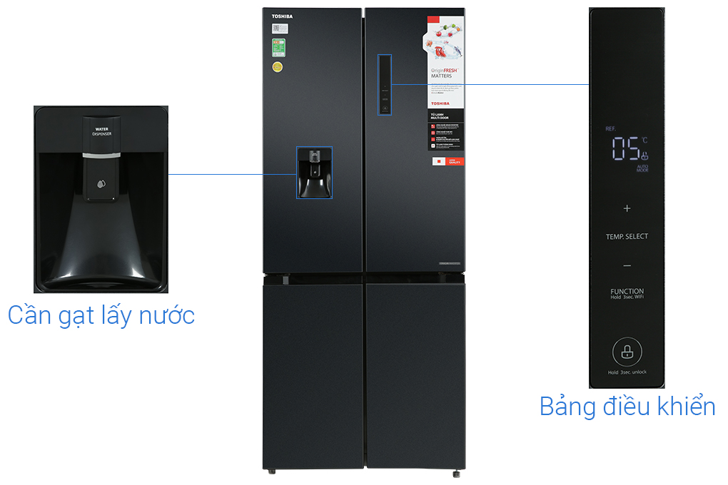 – Mẫu tủ lạnh nhiều cửa Toshiba phù hợp cho mọi vị trí trong không gian nhà bếp hiện đại nhờ kiểu dáng sang trọng và gam màu xám dễ phối hợp với các nội thất khác xung quanh.