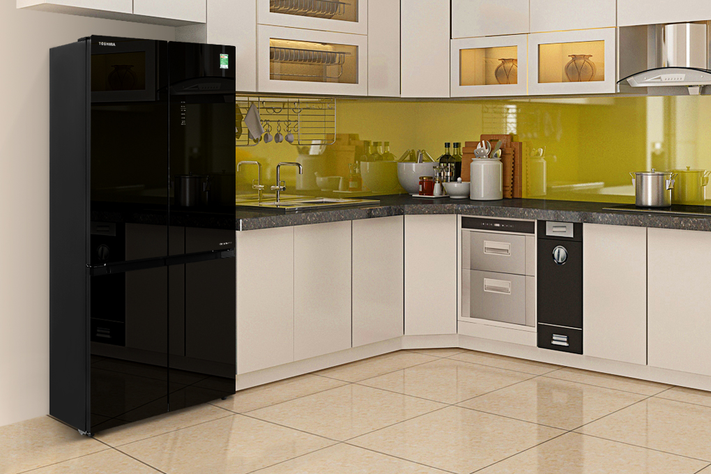 Toshiba Inverter 511 lít GR-RF610WE-PGV(22)-XK thuộc kiểu tủ lạnh hiện đại multi door với số cánh cửa là 4, bề mặt mặt tủ làm bằng chất liệu gương mờ sáng bóng cùng với gam màu tối, góp phần làm cho không gian sống của bạn trở nên sang trọng và tinh tế hơn.