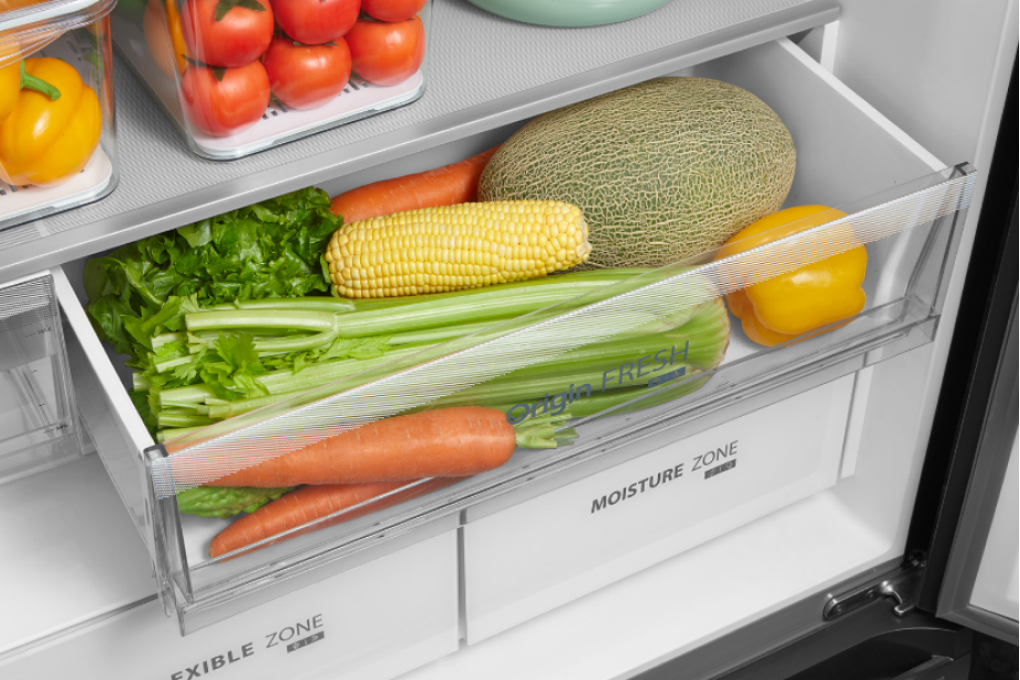 – Ngăn rau quả dung tích lớn, thiết kế dạng ngăn kéo giúp dễ dàng lấy, đặt rau củ, trái cây.
