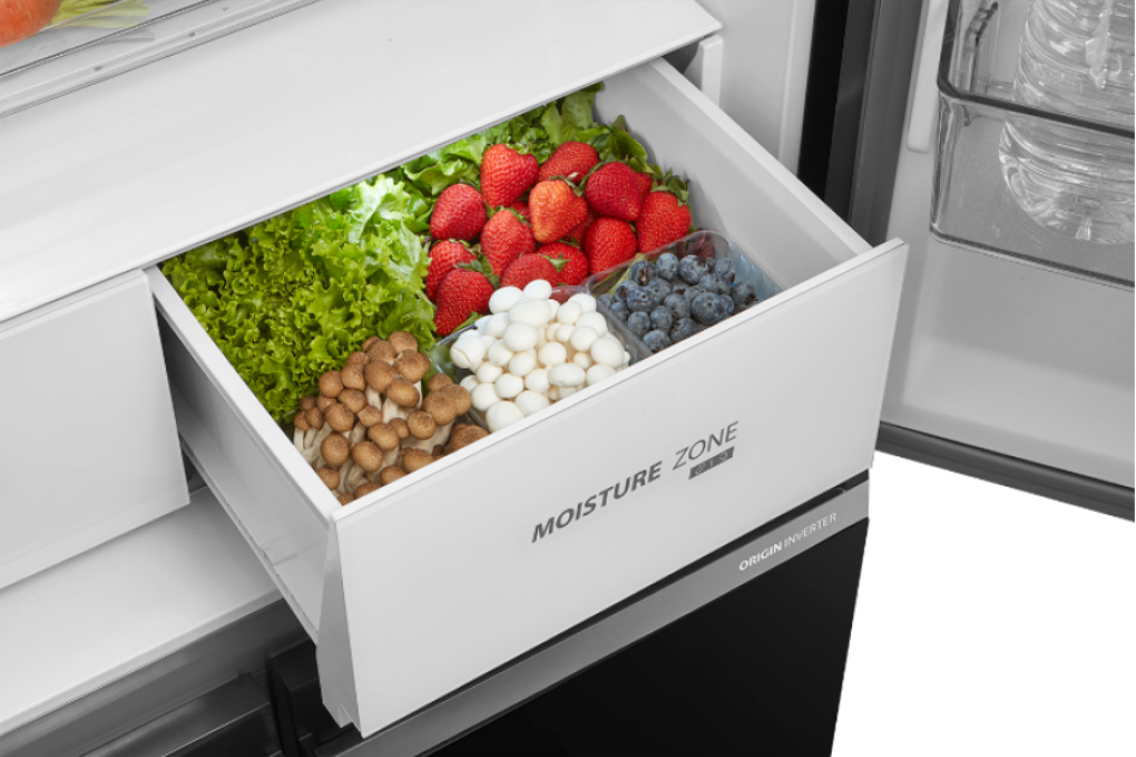 – Ngăn giữ ẩm The Moisture Zone với tấm chắn đặc biệt giúp duy trì độ ẩm ở mức 86 %, giữ thực phẩm luôn tươi ngon và vẹn nguyên dinh dưỡng.