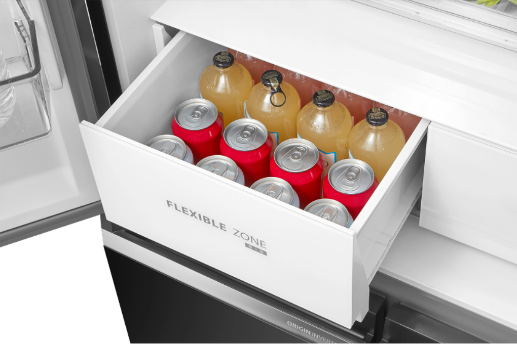 – Ngăn điều chỉnh Flexible Zone 3 chế độ chuyển đổi linh hoạt gồm: rau củ quả (5 đến 7°C), thức uống (1 đến 3°C), đông mềm (-1 đến 1°C).
