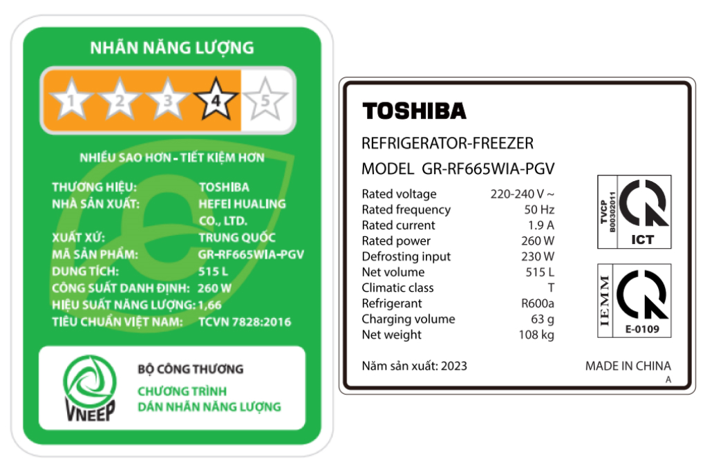 – Dung tích tổng 515 lít thích hợp với gia đình từ 4 – 5 thành viên có thể thoải mái lưu trữ thực phẩm.