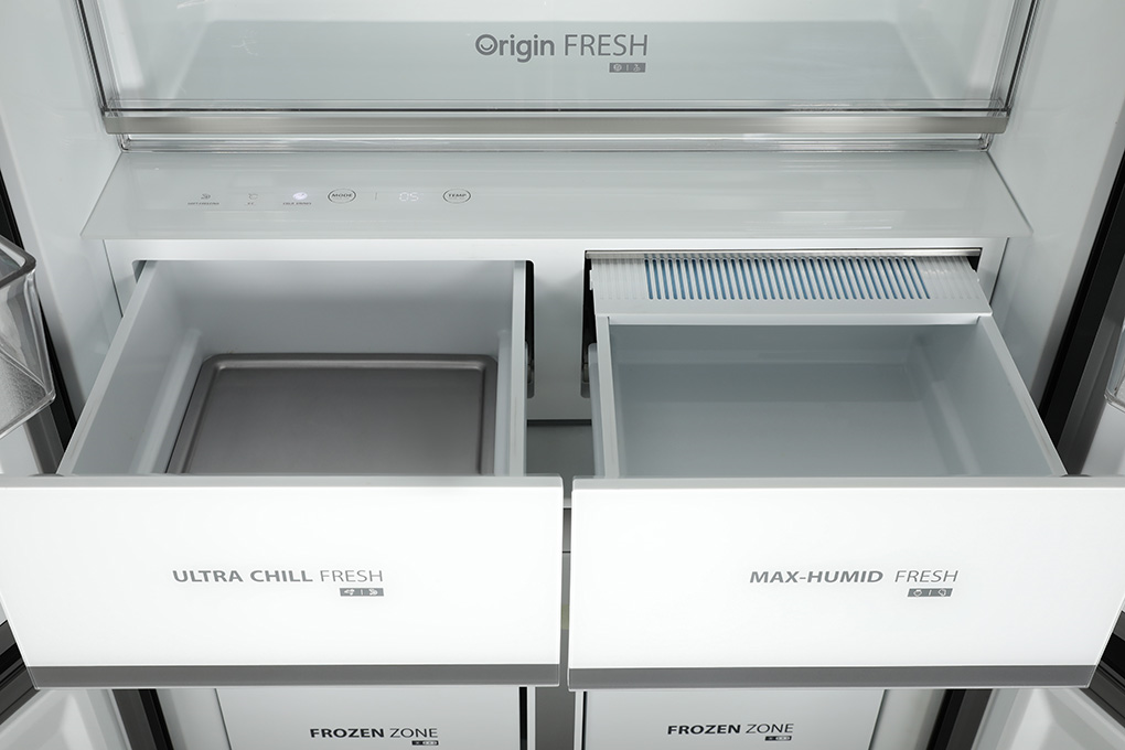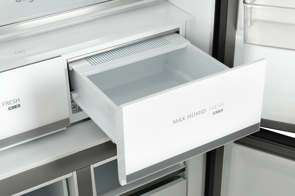 – Ngăn cấp ẩm tối đa Max-humid Fresh đảm bảo duy trì độ ẩm đến 90% với lớp màng có khả năng lưu lại những hạt sương ẩm li ti để ngăn tủ luôn duy trì ổn định độ ẩm, đồng thời ngăn chặn sức gió thổi trực tiếp để thực phẩm luôn tươi ngon và duy trì dưỡng chất.