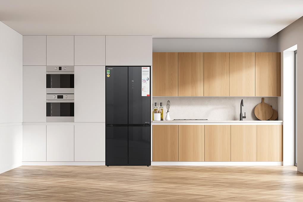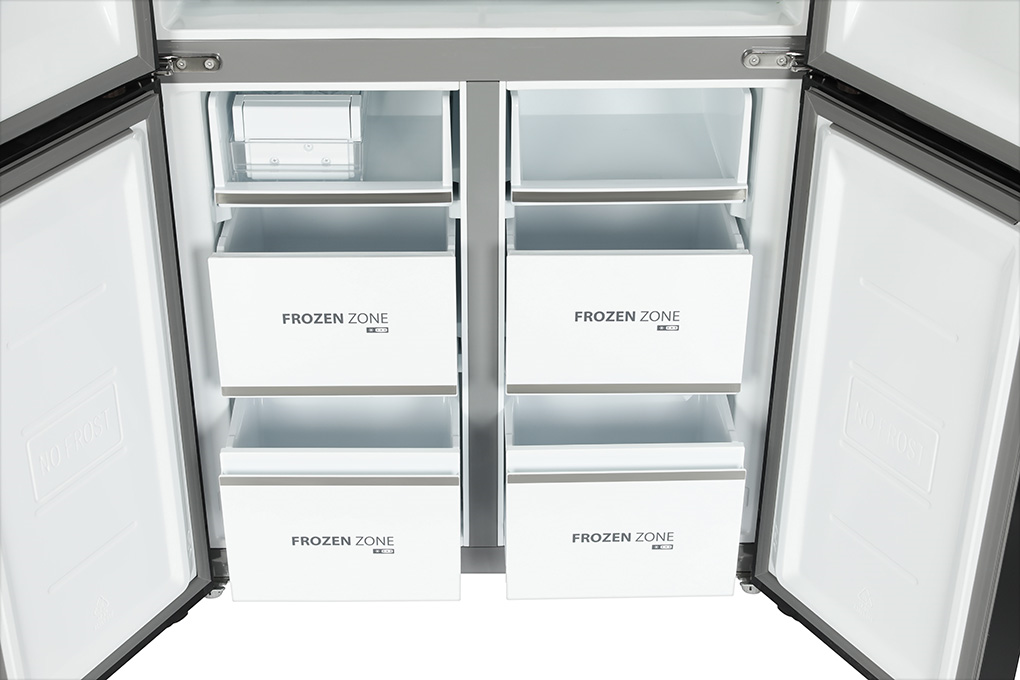 – Kiểu dáng tủ lạnh multidoor 4 cửa với cửa kính 4 lớp – vân dệt Nhật Bản sang trọng đẳng cấp.