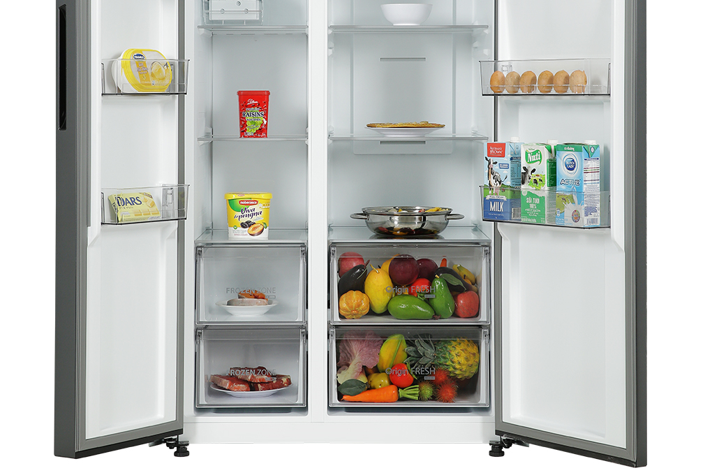 – Thiết kế cửa tủ thông minh: Hỗ trợ người dùng có thể kéo ngăn chứa ra hoàn toàn khi mở cửa tủ 90 độ, thuận tiện cho việc lấy và cho vào thực phẩm bên trong tủ.