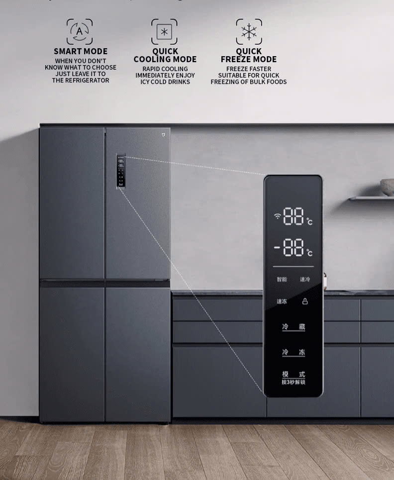 Cùng với bảng điều khiển cảm ứng LED đơn giản, tủ lạnh Xiaomi Mijia Cross Door 430L mang đến trải nghiệm tiện lợi, dễ dàng cho mọi thành viên trong gia đình.