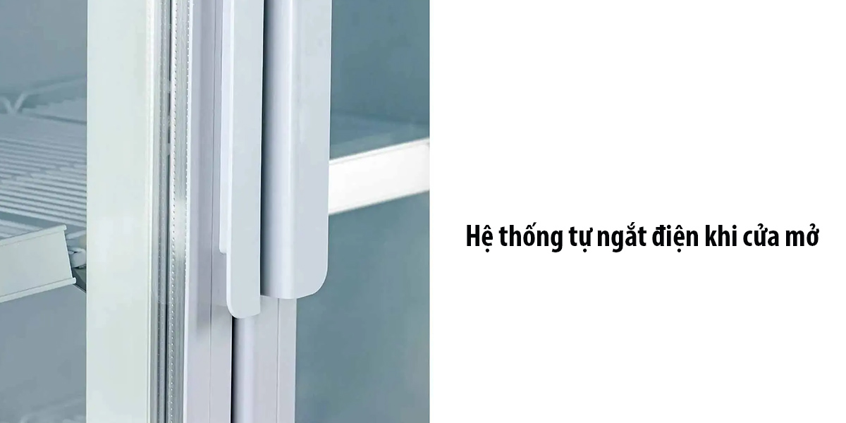Sản phẩm được trang bị hệ thống tự động ngắt điện khi cửa tủ được mở. Cơ chế này giúp tiết kiệm năng lượng và đảm bảo rằng khi cửa tủ mở, không có sự lãng phí nhiệt độ hay tiêu hao điện năng không cần thiết.