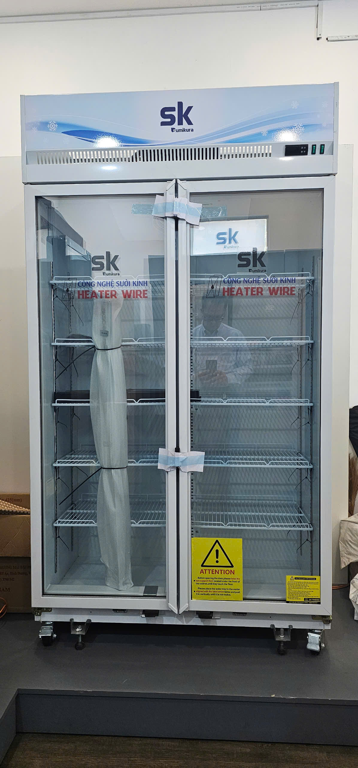 Tủ mát Sumikura SKSC-850HW2 là mẫu tủ mát 2 cánh mở block máy nén phía trên, dàn lạnh ống đồng, hệ thống sưởi kính bằng điện trở, Không có hộp đèn QC