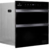 Máy tiệt trùng thiết kế dạng âm tủ nhằm tối ưu không gian nhà bếp. Tủ tiệt trùng có nhiều khay để chứa chén dĩa và ly.