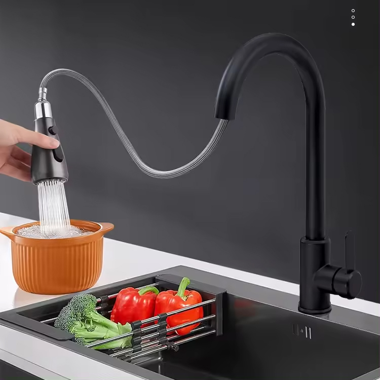 Đầu vòi kéo thông minh: Thiết kế đầu vòi dây rút có thể kéo dài phần đầu và tự động thu lại, giúp bạn dễ dàng điều chỉnh vòi để làm sạch mọi ngóc ngách trong chậu rửa.