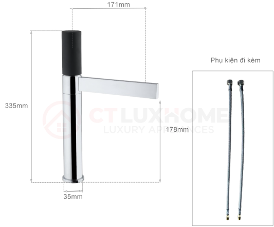Đồng mạ Chrome: Sản phẩm được làm từ chất liệu đồng mạ Chrome, đảm bảo tính thẩm mỹ cao, độ bền và chống gỉ sét, dễ dàng vệ sinh và bảo trì.