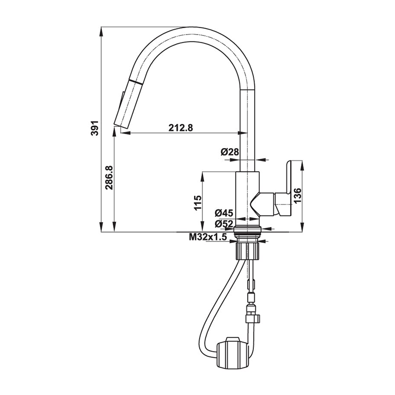 – Đầu phun có thể kéo ra với chức năng kép: Chuyển đổi dễ dàng giữa luồng khí và tia phun mạnh, hỗ trợ tối đa cho việc rửa chén bát và vệ sinh khu vực bếp.