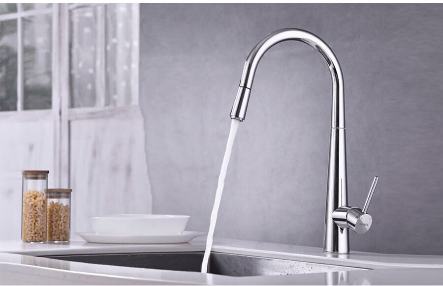 + Vòi dạng cổ rút dễ dàng kéo dài để vệ sinh chậu rửa