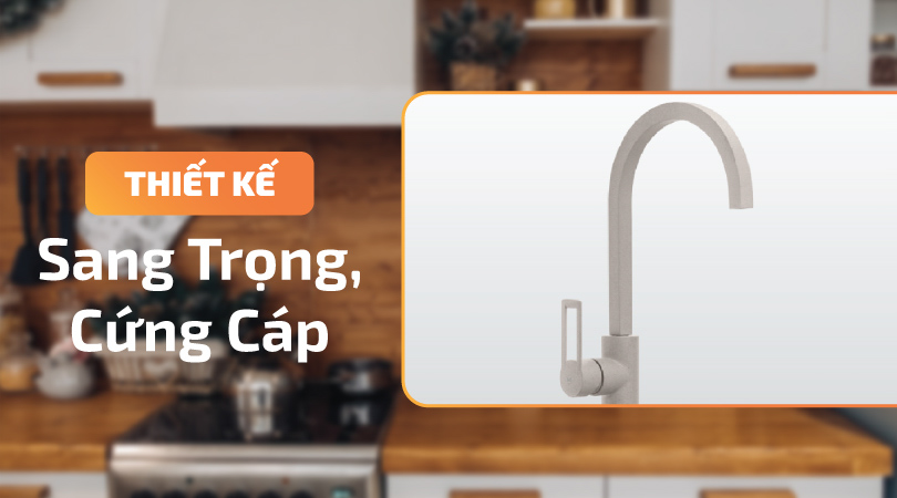 Màu sắc đất đẹp mắt của vòi tạo điểm nhấn và làm nổi bật không gian bếp. Những chi tiết nhỏ như thân vòi, cần gạt và đầu vòi được thiết kế hài hòa và tinh tế, tạo nên tổng thể bắt mắt.