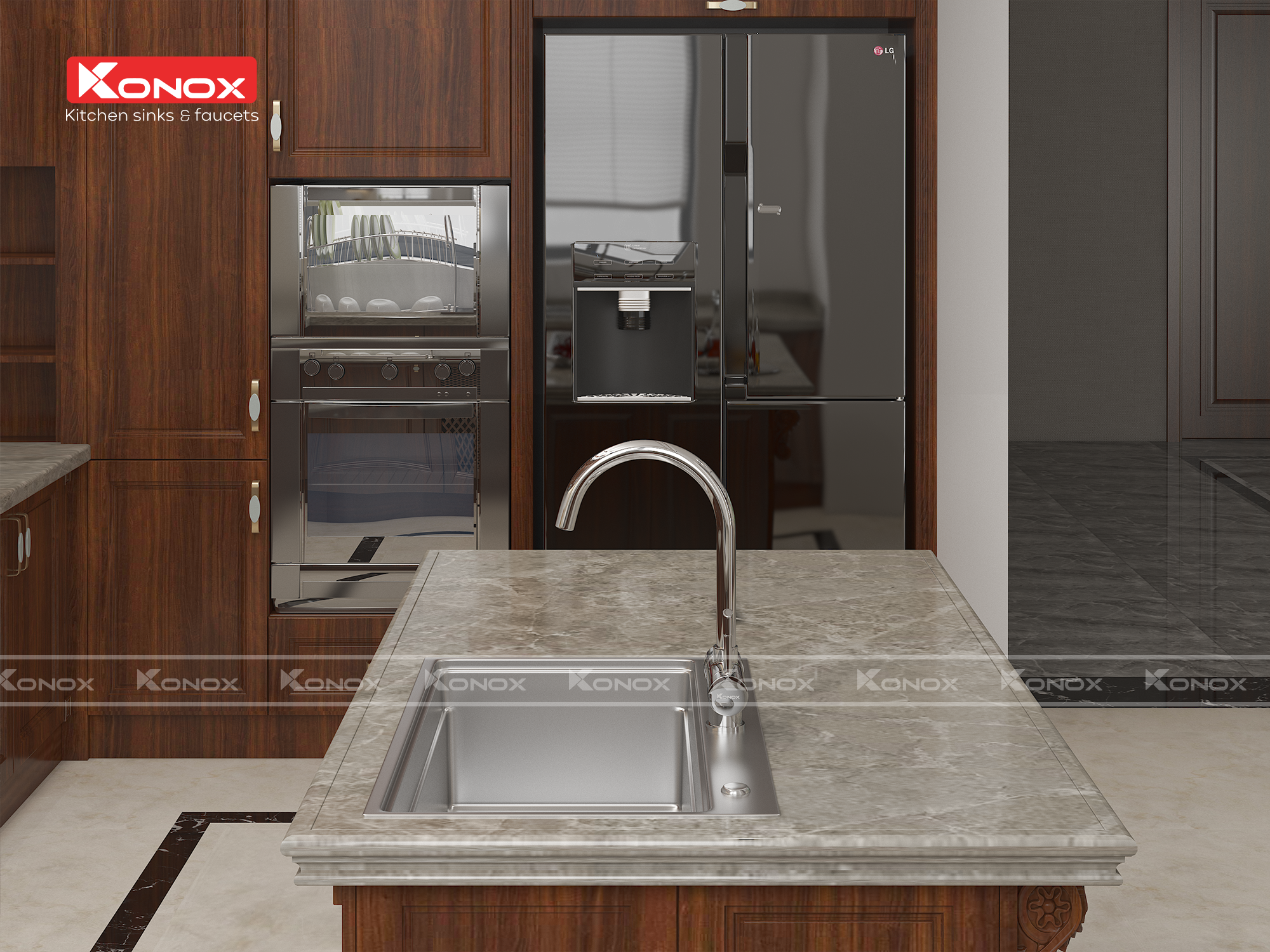 Lấy cảm hứng từ kiệt tác kiến trúc mái vòm, Vòi rửa bát ba đường nước RO TRIM-WATER mang đường nét vòng cung, kiểu dáng thanh lịch, đem lại hơi thở trang nhã cho mọi căn bếp sở hữu thiết bị. Bằng trang bị 3 đường nước tích hợp 2 đường nóng lạnh + 1 đường kết nối tương thích với các máy lọc RO nhằm tối ưu diện tích bàn bếp chuẩn bị – đây khẳng định là chuẩn mực thiết kế cho một gian bếp tối giản, hiện đại và tiện ích.