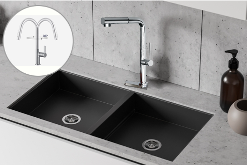 Thân vòi xoay 360 độ tăng phạm vi tiếp cận rửa vật dụng