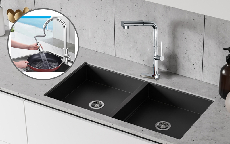 Được trang bị tính năng kéo dài khi rửa, đây sẽ là sự lựa chọn phù hợp cho các gia đình.