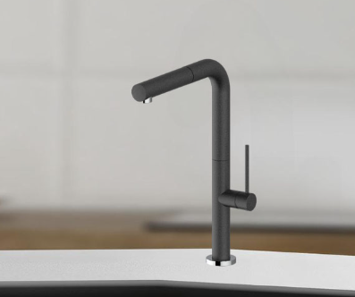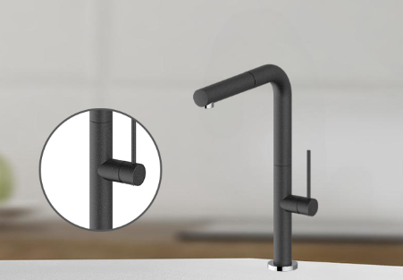 Bề mặt vòi rửa chén Furst F400076CV được mạ lớp đá mịn màu đen mang đến sự sang trọng cho căn bếp.