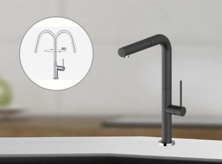 Thân vòi xoay 360 độ tăng phạm vi tiếp cận rửa vật dụng
