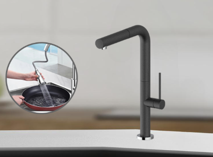 Với tính năng kéo rút tiện lợi, bạn có thể kéo đầu vòi phun dài ra và đưa tới mọi nơi trong bồn rửa hoặc xa hơn. Đây là một tính năng tiện lợi và được nhiều người yêu thích sử dụng.
