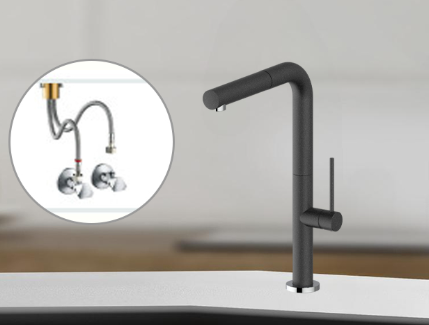 Vòi rửa bát Flim D2 F400076CV đi kèm dây cấp nước giúp quá trình lắp đặt và sử dụng trở nên thuận tiện và dễ dàng.