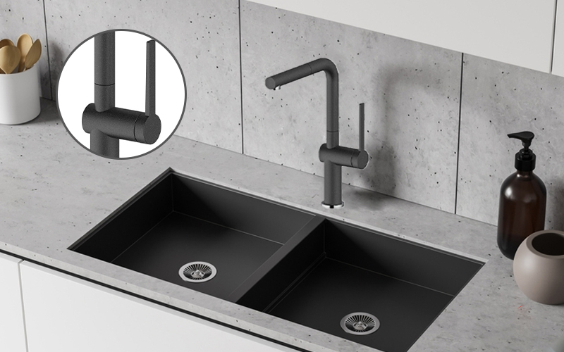 Dây vòi được thiết kế có thể kéo rút mở ra một không gian rộng lớn cho việc rửa sạch thực phẩm và vật dụng. Bằng cách kéo dài dây vòi, bạn mở rộng phạm vi sử dụng mà không gặp bất kỳ khó khăn nào, giúp cho việc làm bếp trở nên thuận lợi hơn bao giờ hết