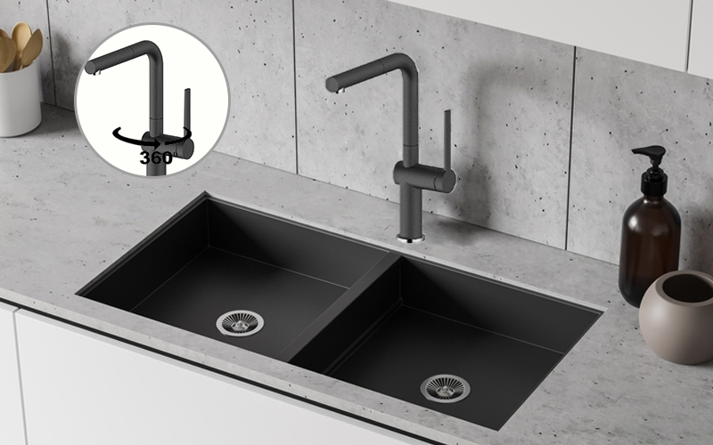Thân vòi xoay 360 độ tăng phạm vi tiếp cận rửa vật dụng