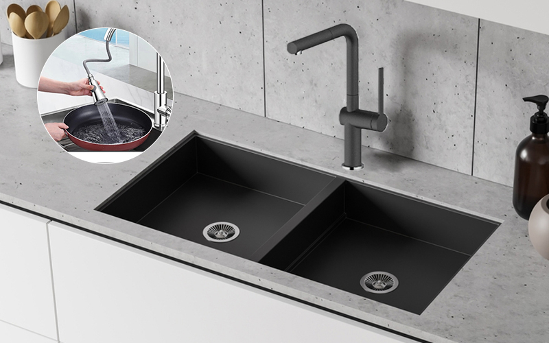 Tính năng kéo rút vòi tiện lợi rửa sạch mọi ngóc ngách