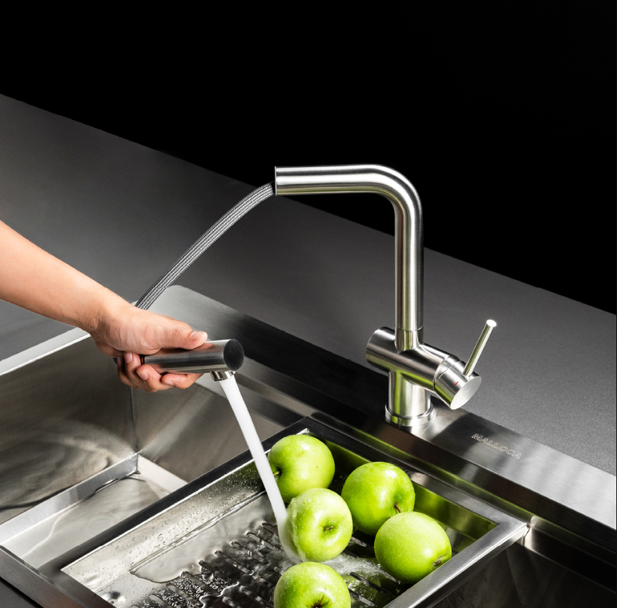 Điểm đặc biệt của K103-SS nằm ở cơ chế dây rút linh hoạt, cho phép điều chỉnh độ dài vòi theo nhu cầu. Khi không sử dụng, bạn có thể thu gọn vòi dễ dàng, tiết kiệm không gian và giữ cho khu vực bồn rửa luôn gọn gàng. Thiết kế này đặc biệt phù hợp với những căn bếp có diện tích hạn chế.